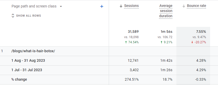 With the objective of boosting awareness and encouraging appointment bookings, we chose one of Bodycraft’s top-performing blogs; ‘Hair Botox Treatment’. We saw that the blog named ‘What is Hair Botox’ started gaining traction on the SERP (Search Engine Page Results) and ranking for a featured snippet. We decided to juice this opportunity to revamp it with relevant keywords and enhance the content further to cater to the user intent. We also strategically designed the FAQ section to spark the user’s curiosity and showcase the brand’s authority in the “People Also Ask” section.